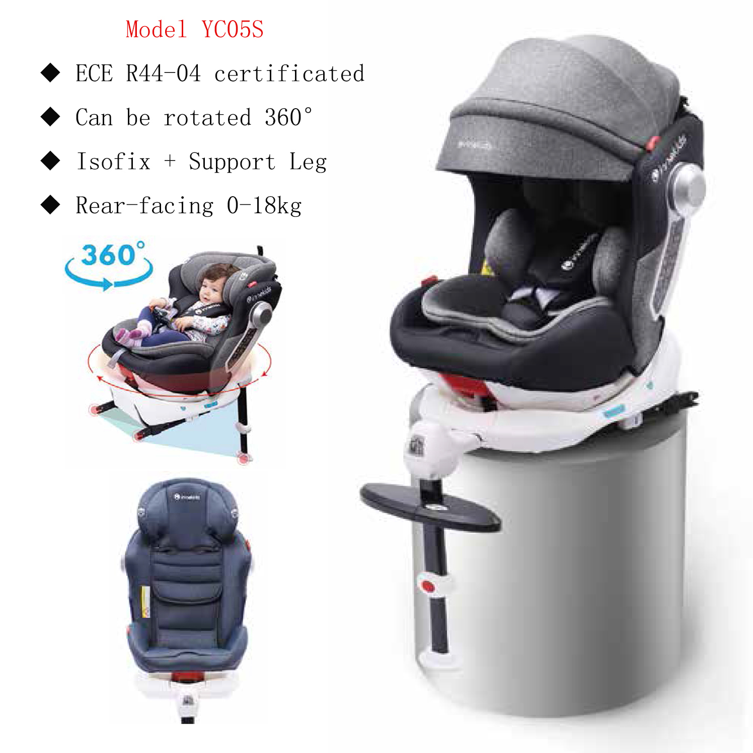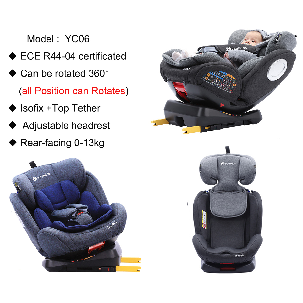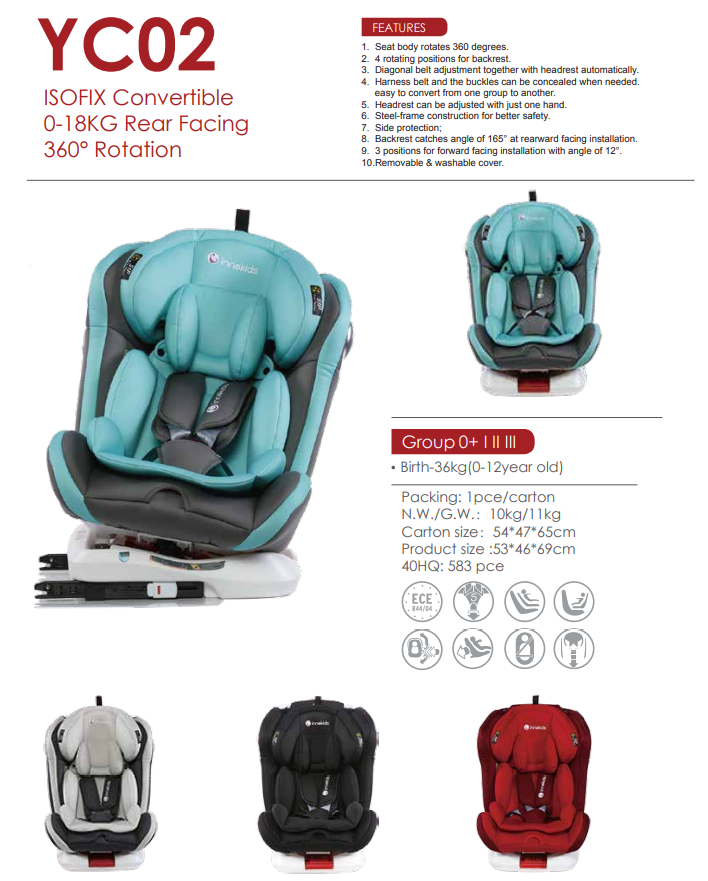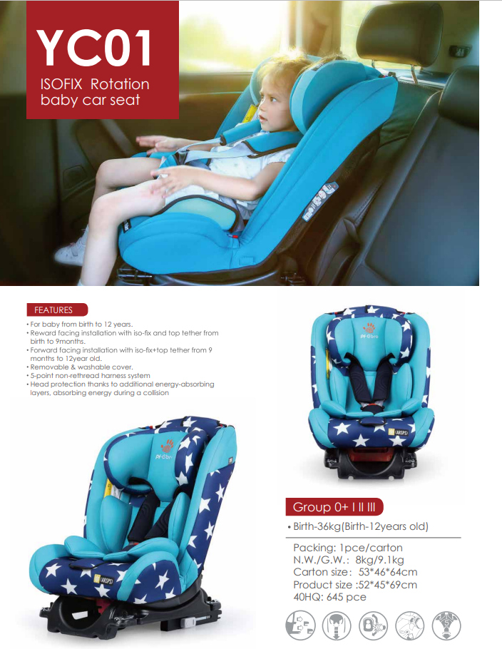Group 0+ I II III ,Birth-36kg(0-12year old),Children's Car Seat,Seat body rotates 360 degrees