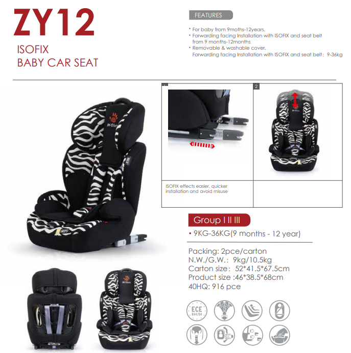 Group I II III,9KG-36KG(9 months - 12 year),Children's Car Seat,Forwarding facing Installation with ISOFIX and seat belt
