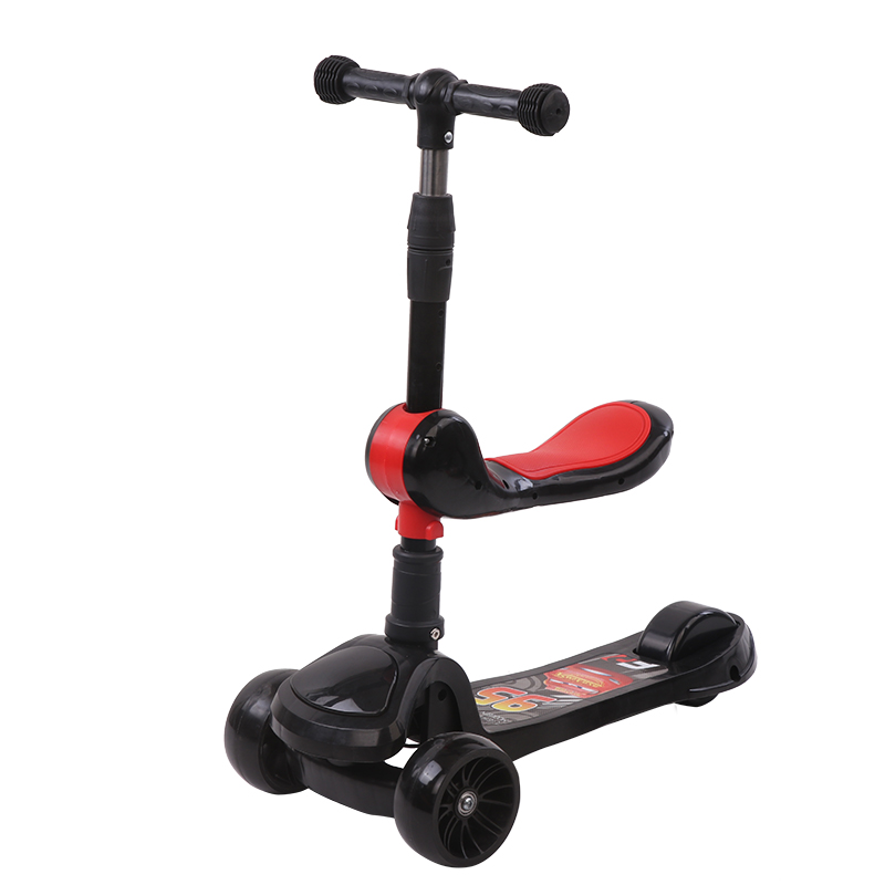 BW-202 cartoon design boys girls smoking LED light music with seat 3 wheels adjustable flashing wheel 3 en 1 kids kick scooter