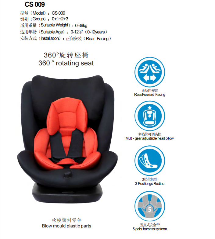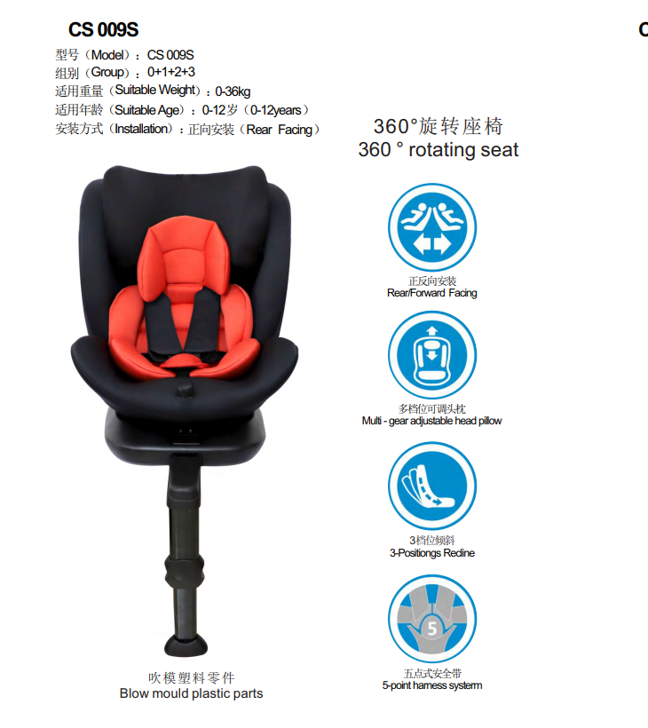 CS009S,children's car seat ,360 ° rotating seat,0-12years,Rear Facing