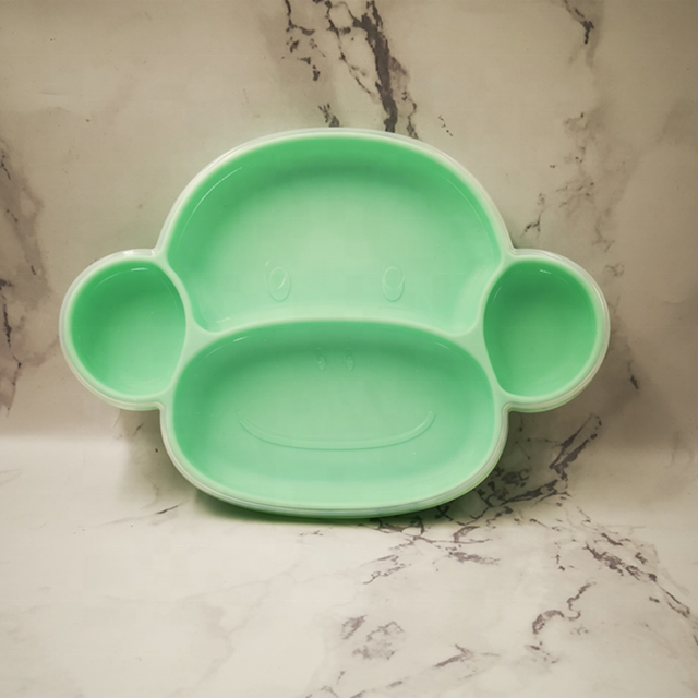TT042 Non-slip BPA Free Kids Suction Plate Microwave Safe Silicone Toddler infant Baby Silicone Plates for children Monkey Shape