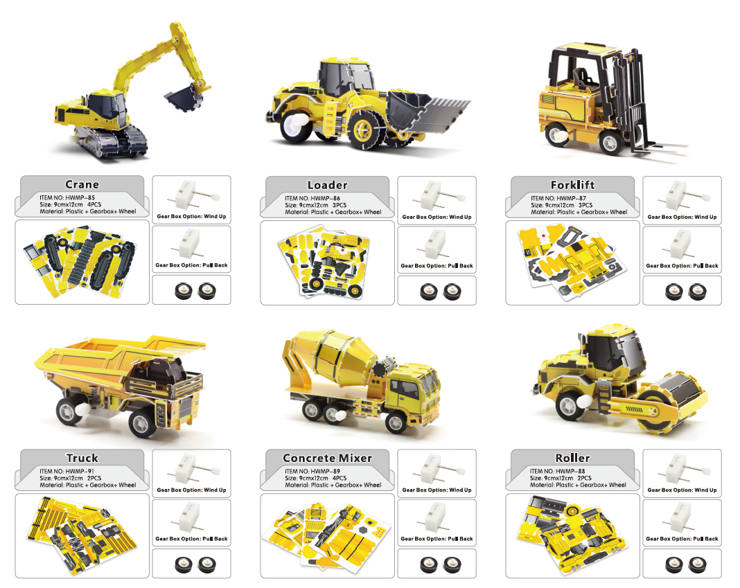 Yellow HWMP-B001 Motorized 3D Puzzle--Loader Big Size DIY Assembly Eco-friendly toys for kids