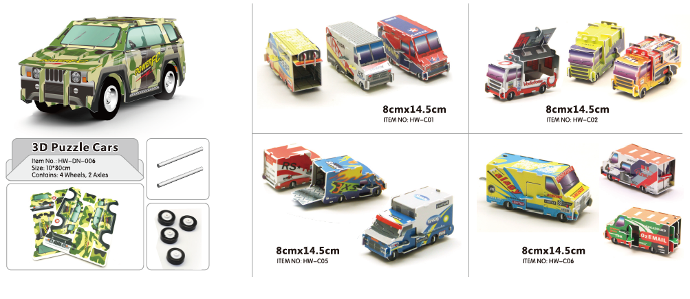 Differently shaped movable 3D vehicle puzzle(bigger size series)DIY Assembly Non-toxic materials educational toys for kids