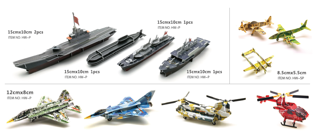 Different styles 3D military Series puzzle durable to use, funny educational paper toys for kids