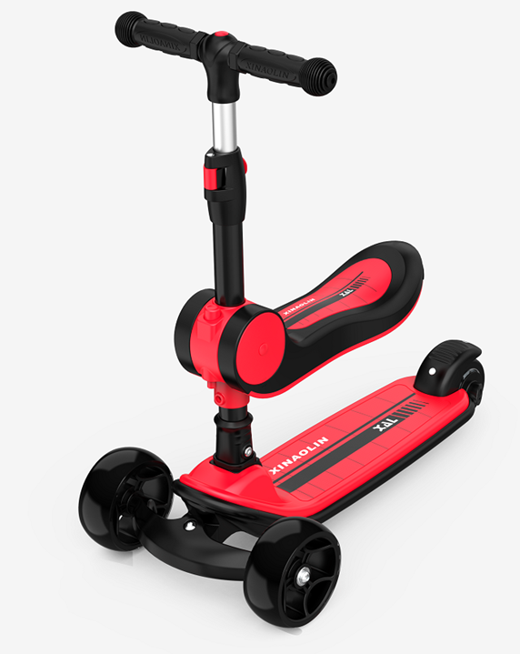 Two-in-One 2 wheels red & black scooter for 3+ kids, TPR, PU material, folding, Multifunction with Adjustable, Lightweight , portable, Outdoor