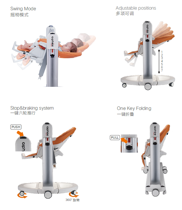 feeding high chairs,adjustable positions,swing mode