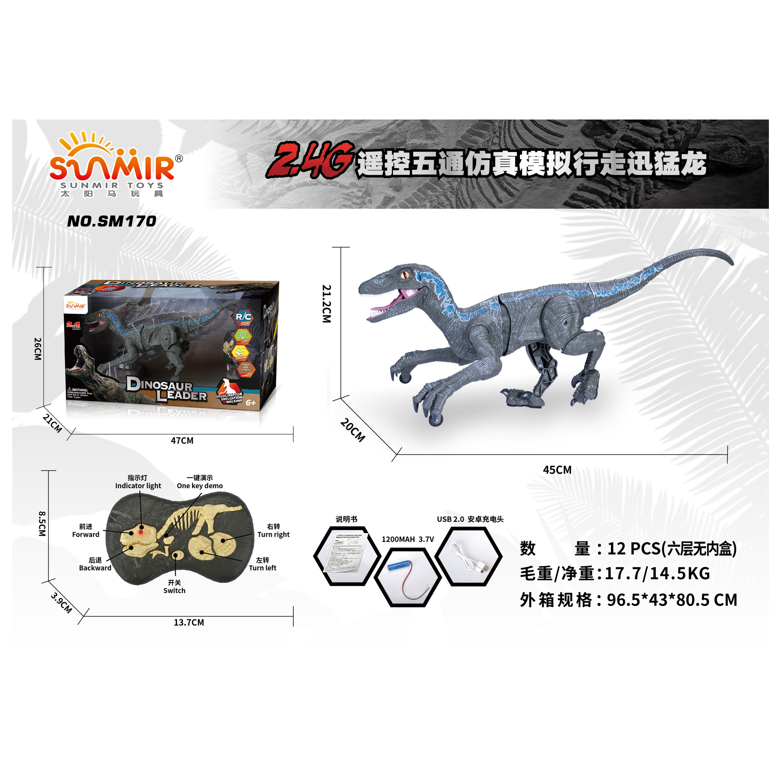 2.4G RC Intelligent Walking Raptor Dinosaur with light and Sound