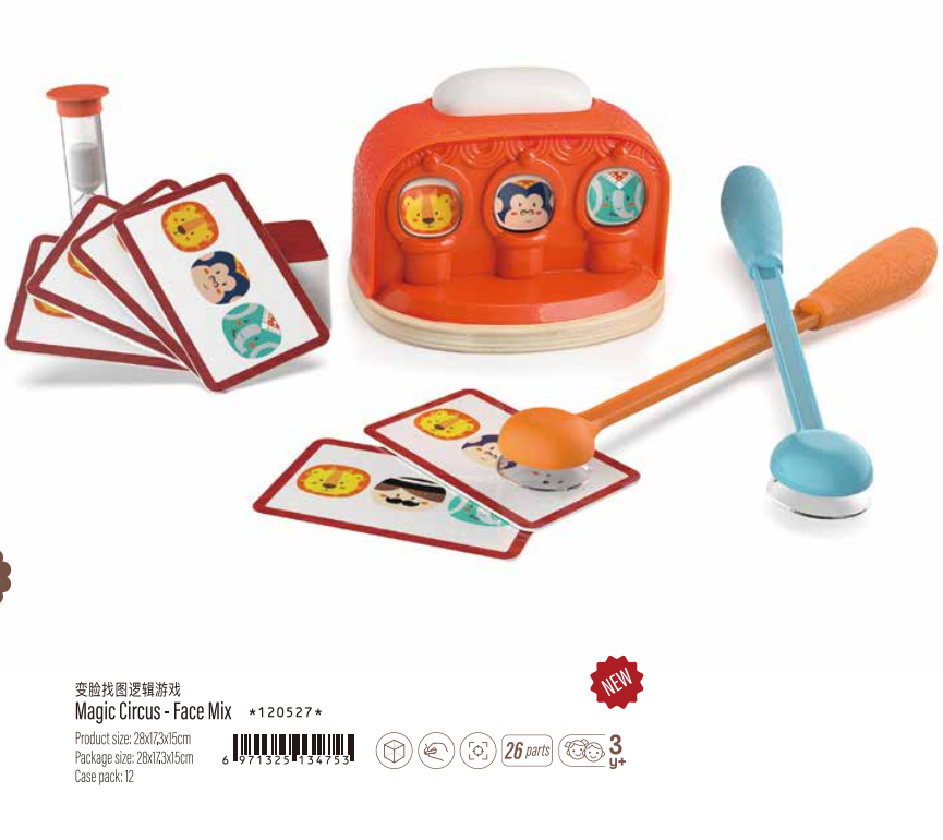 Colorful 120527 Magic Circus Face Mix Educational Game, Eco-friendly wood, plastic, cardboard 26 parts 28X17.3X15cm for kids above 3 years+