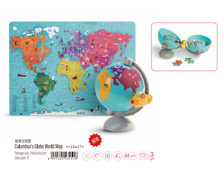 Classic 120427 Columbus's Globe World Map Educational toy Early Learning Quality-guaranteed toys of 64 parts for kids above 3 years
