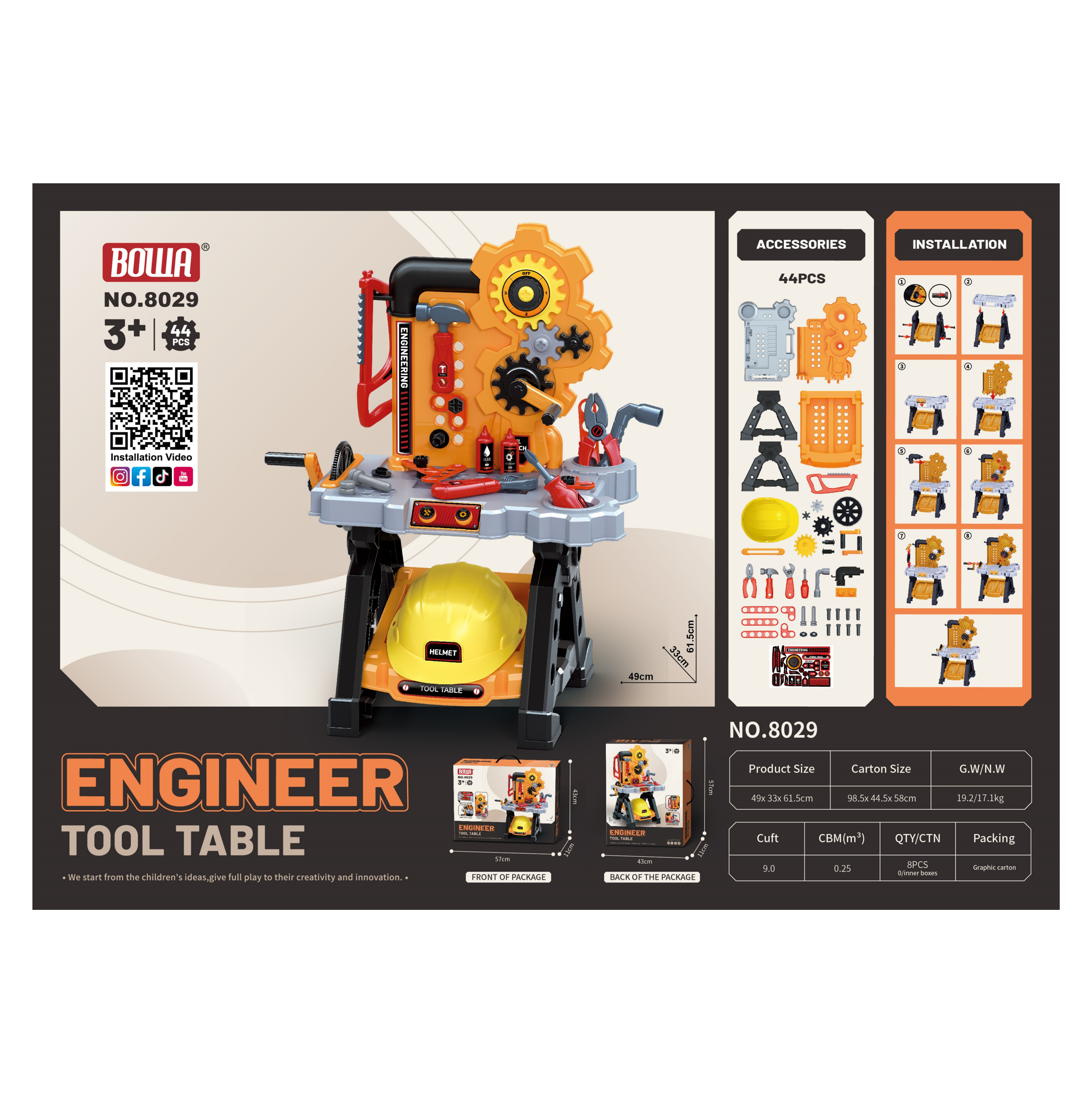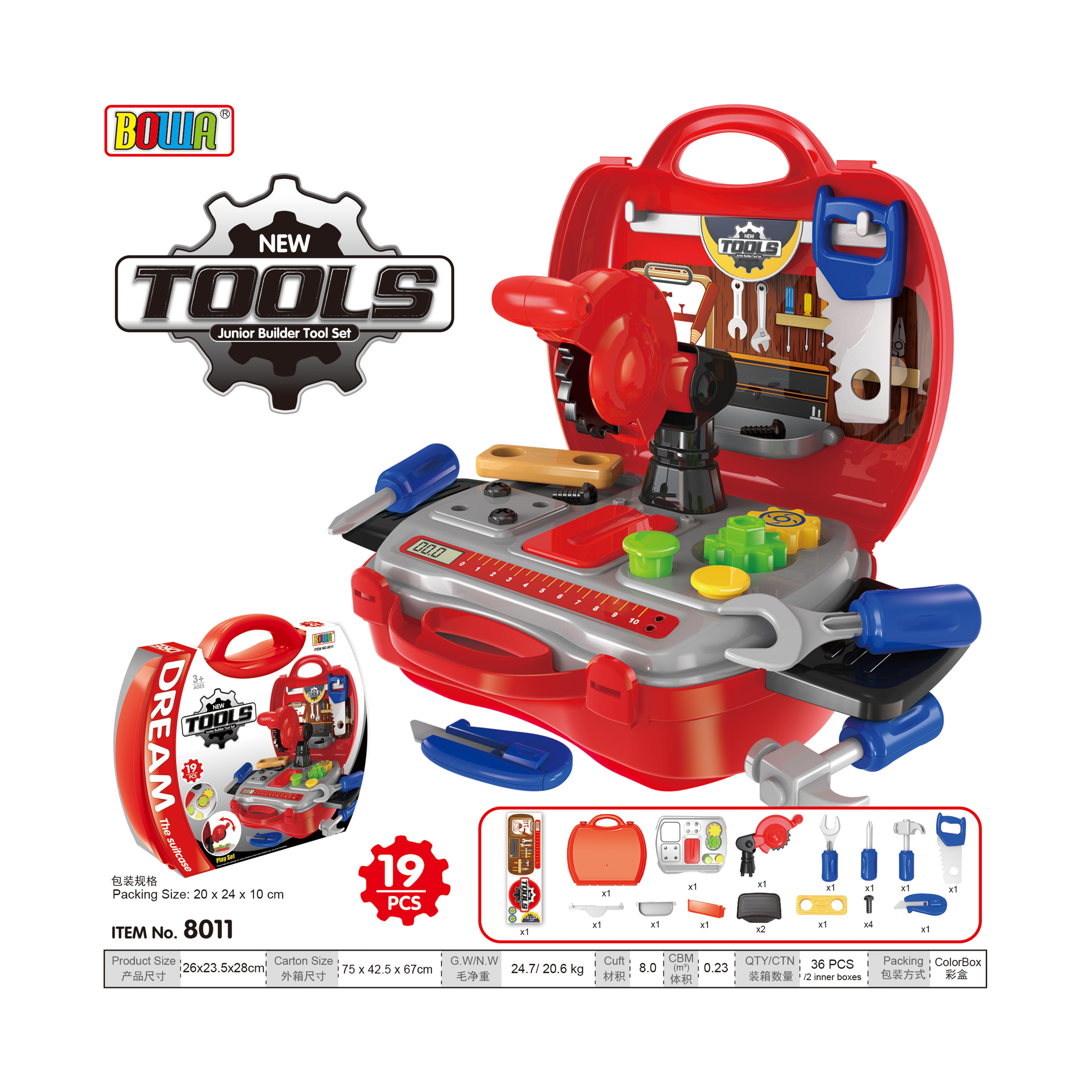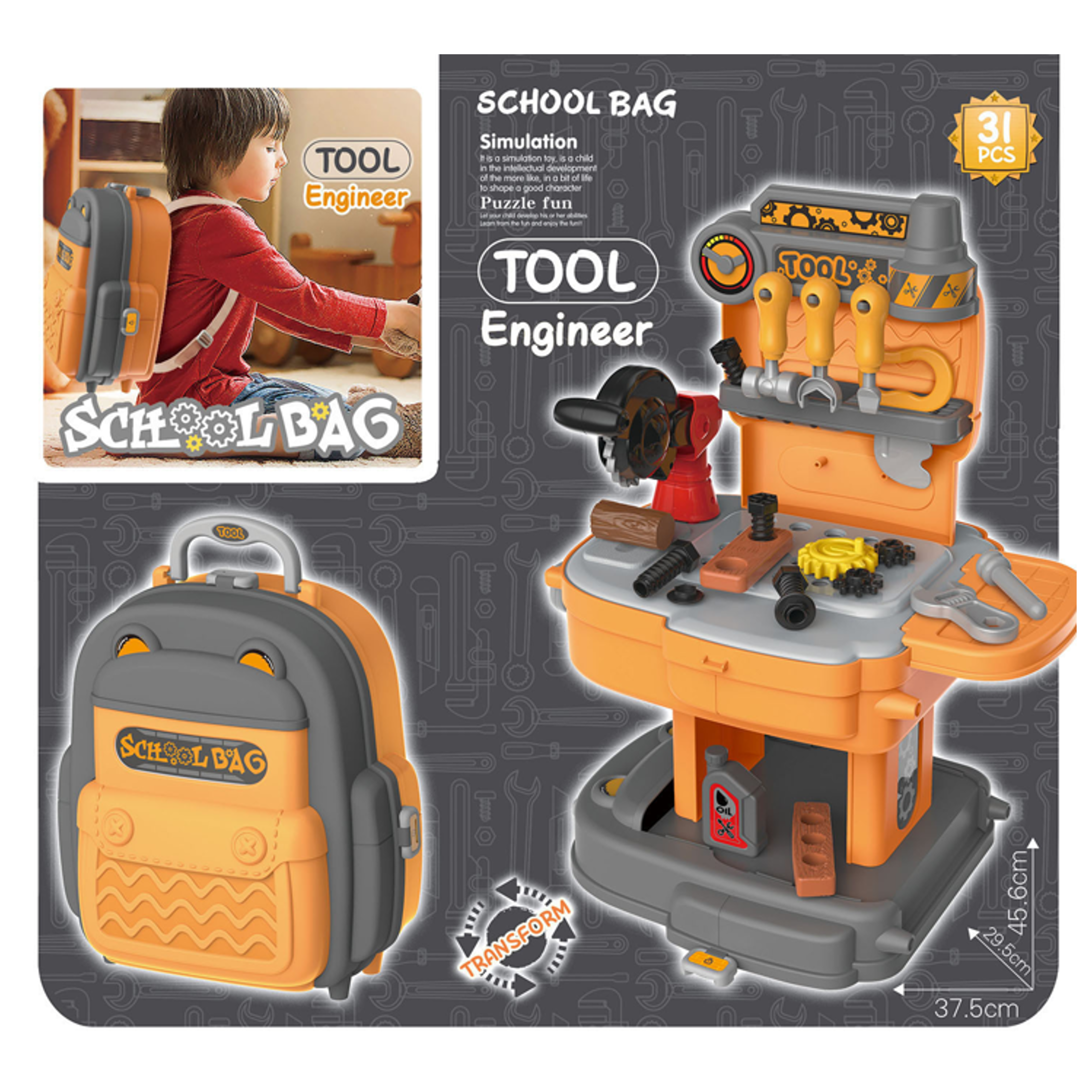 2023 newly released BOWA school bag series 31 pcs tool engineer pretend play toy wholesale from China toy factory