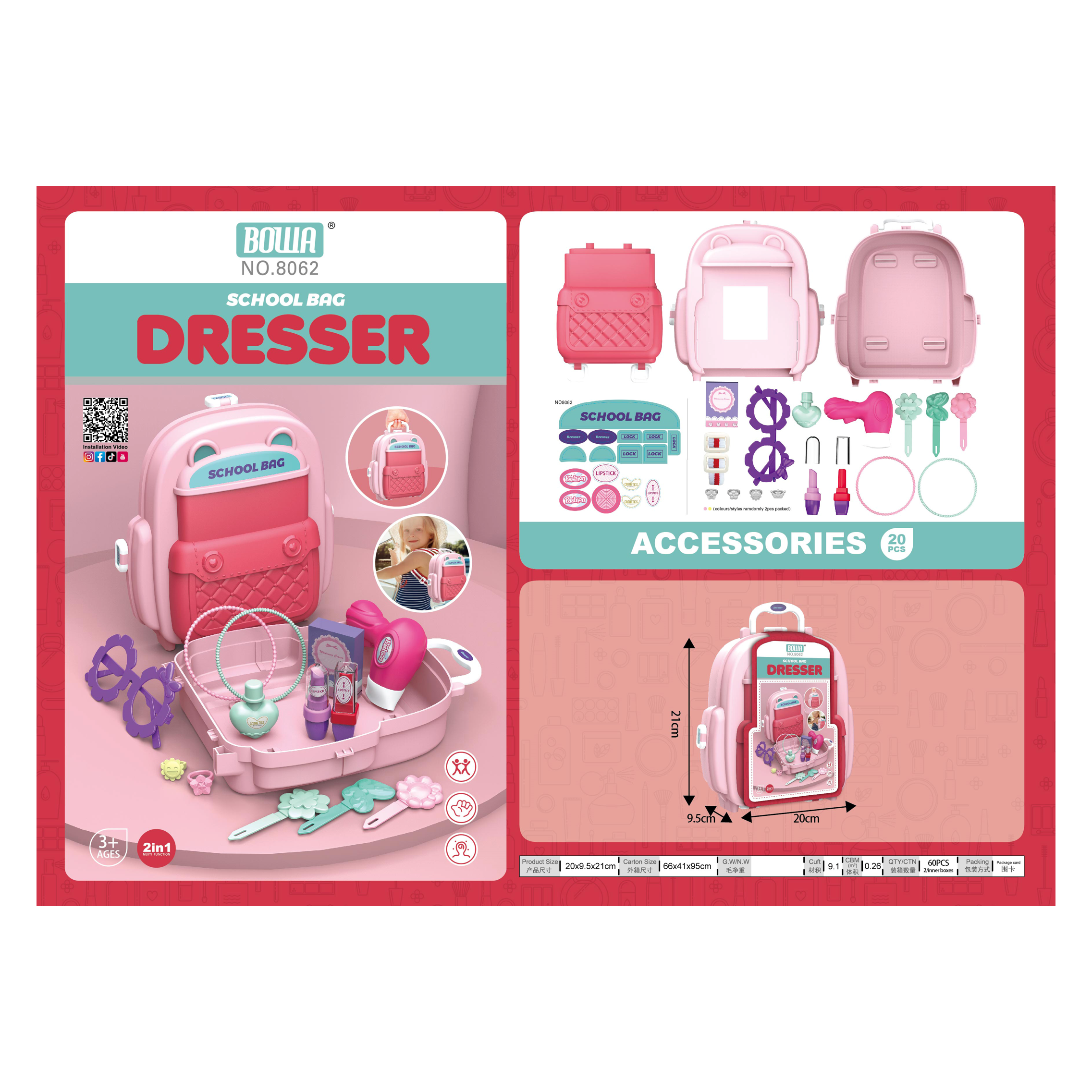 BOWA School bag series pretend play dresser pretend play toy for kids ages 3 wholesale from China toy factory