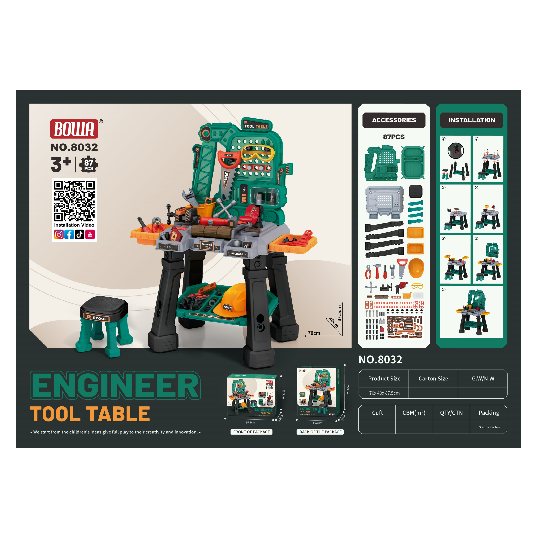 Mobile tool table multi-function pretend play toys for kids ages 3 wholesale from China toy factory