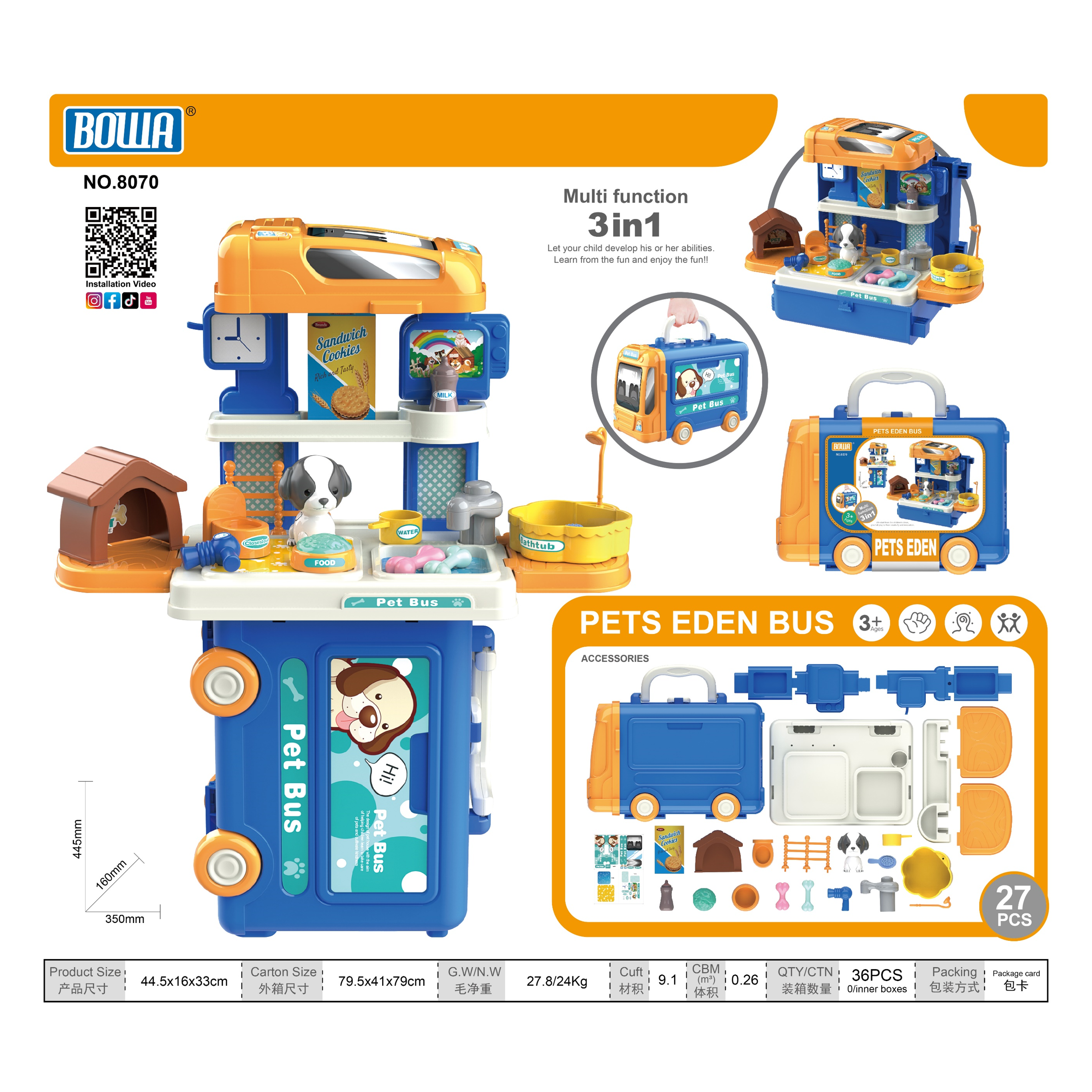 BOWA pet eden bus pretend play toy for kids ages 3 wholesale from China toy factory