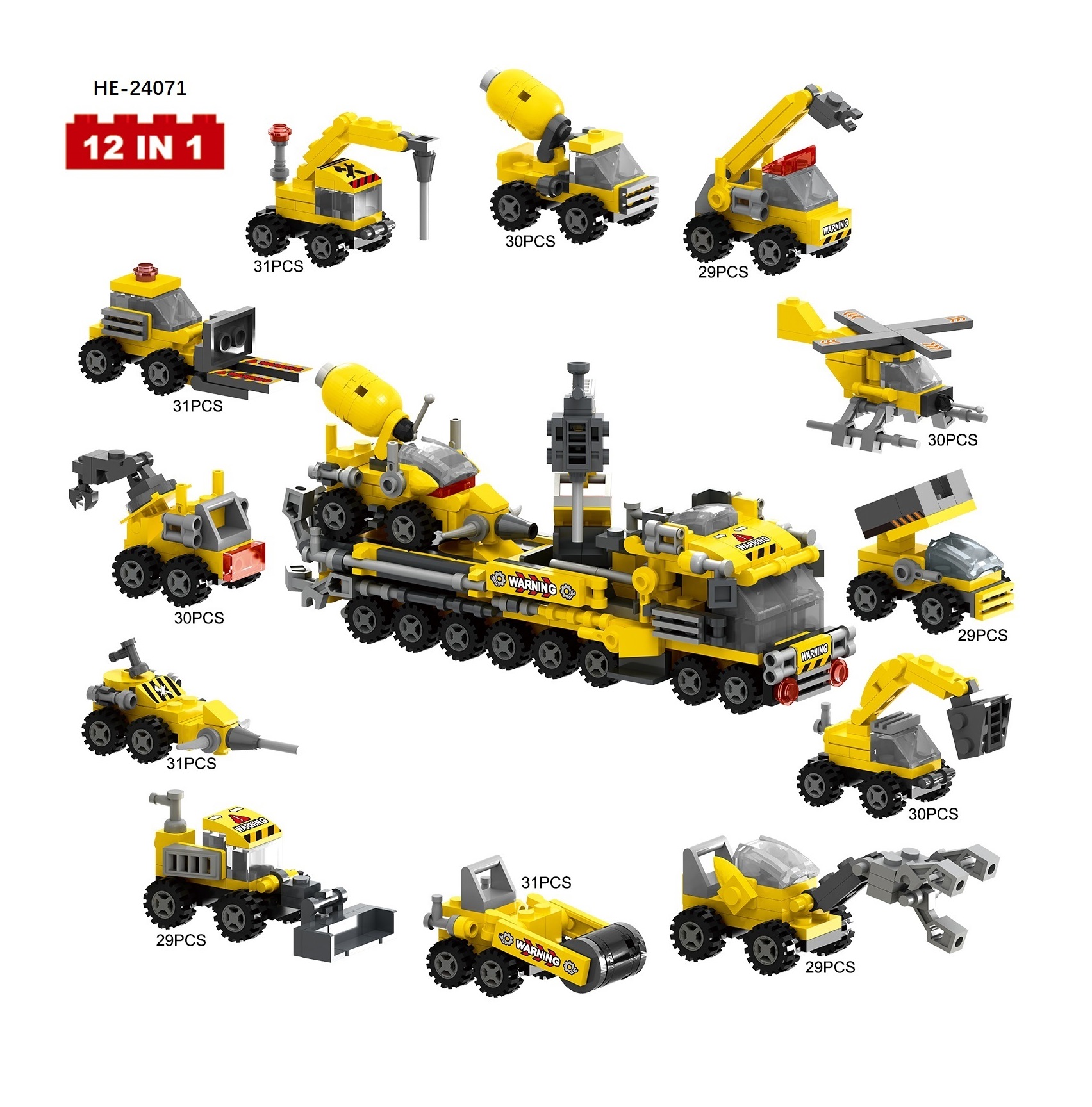 12 models of the fire-fighting series are assembled to form a large fire truck.