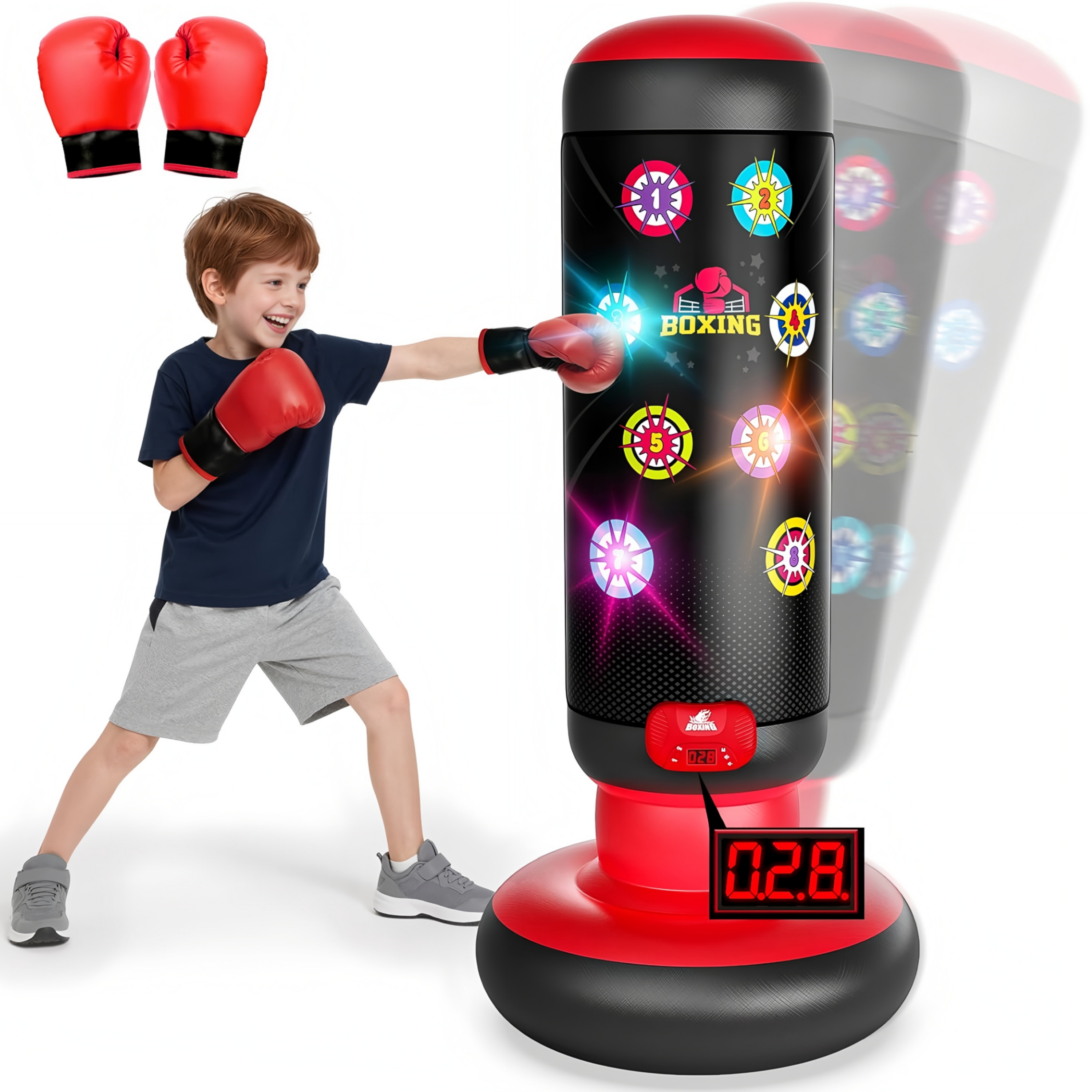 Sxd Wholesale Customized Punching Bag for Kids, Boxing Set with Scoring, Light, Music, Inflatable Boxing Bag with Gloves, Stand Kids Punching Bag Toys
