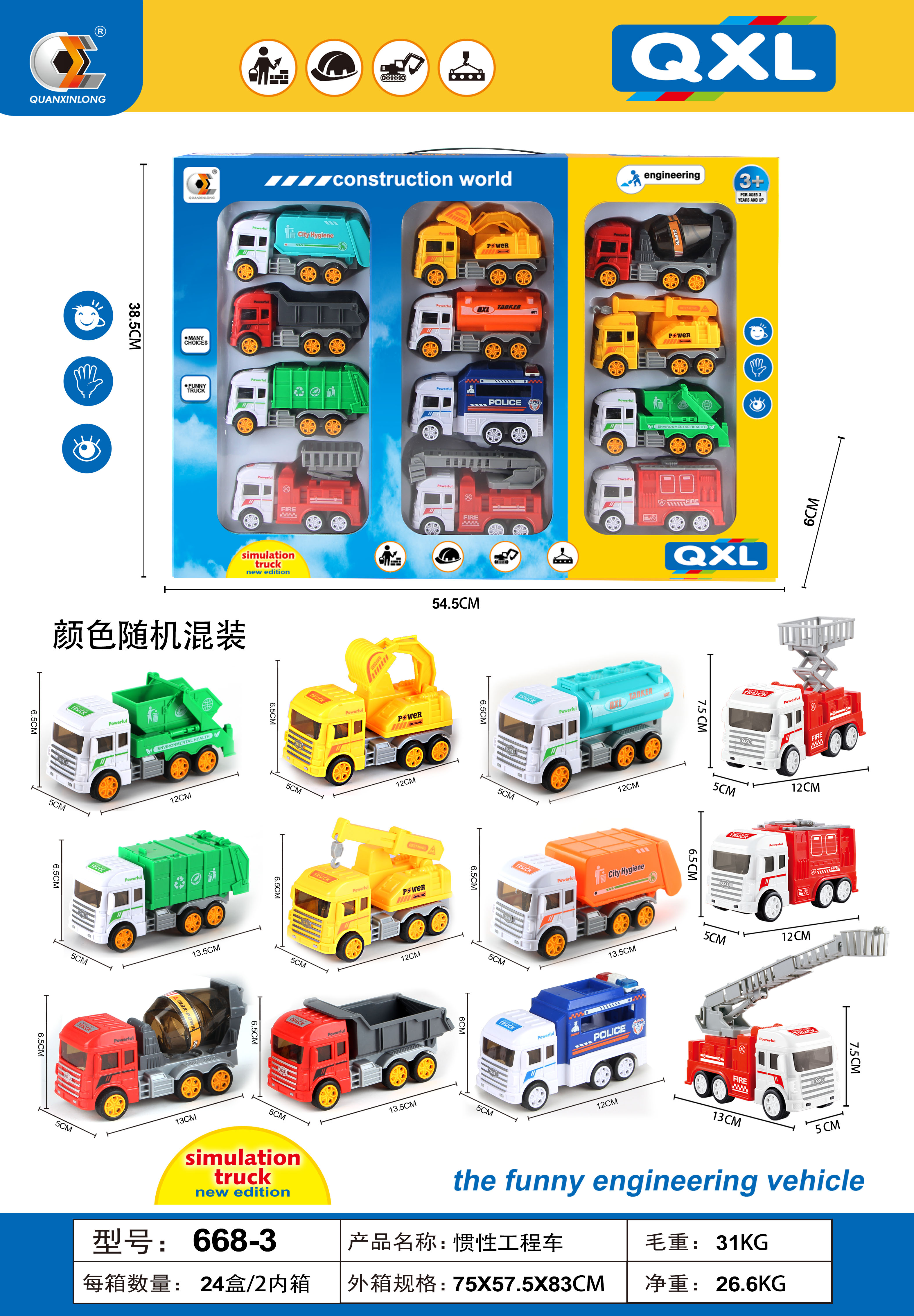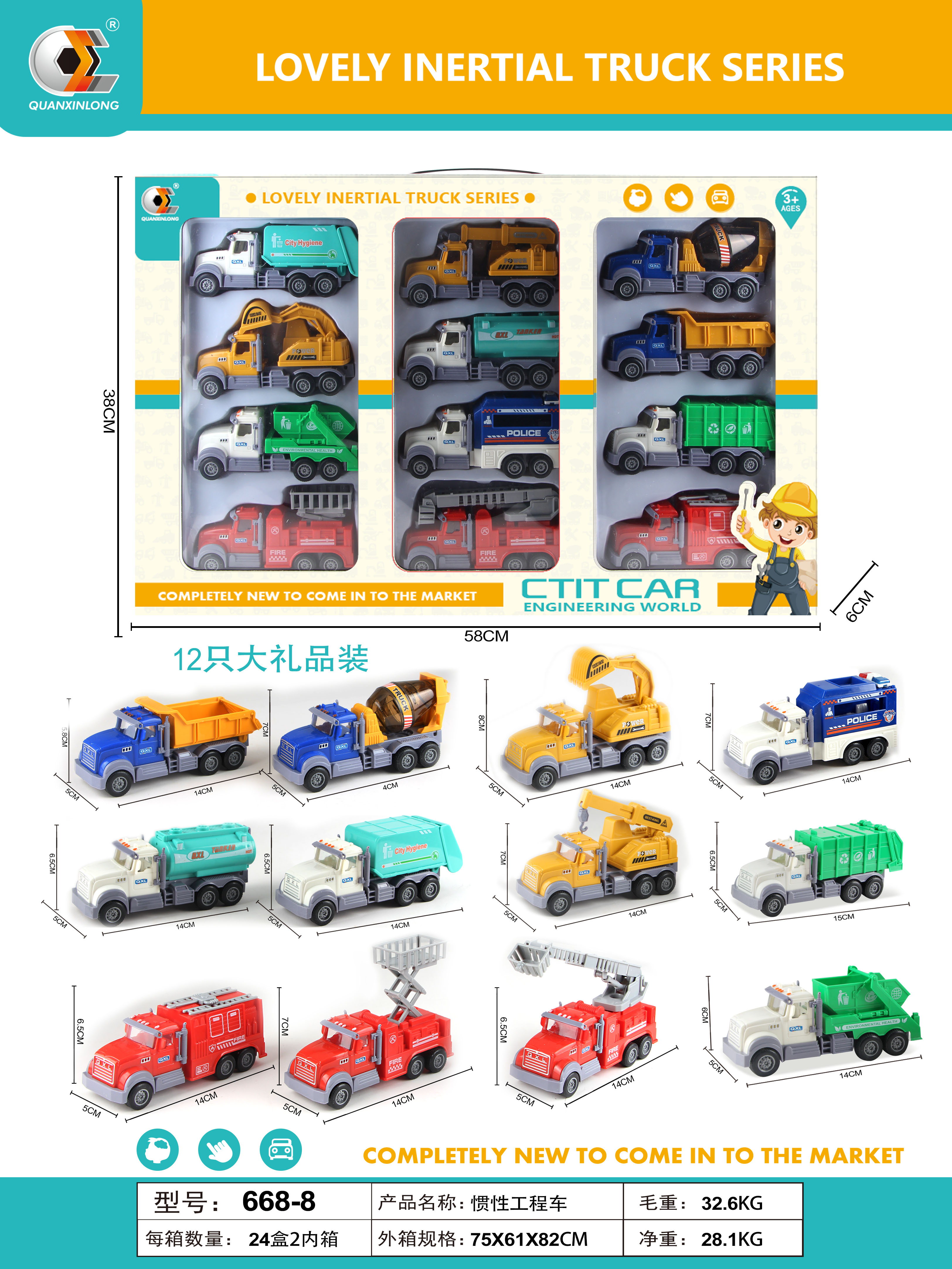 2 kind of colors 7712 Lighting/Friction Truck with 3D lights and music 24 pcs for kids above 3