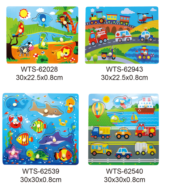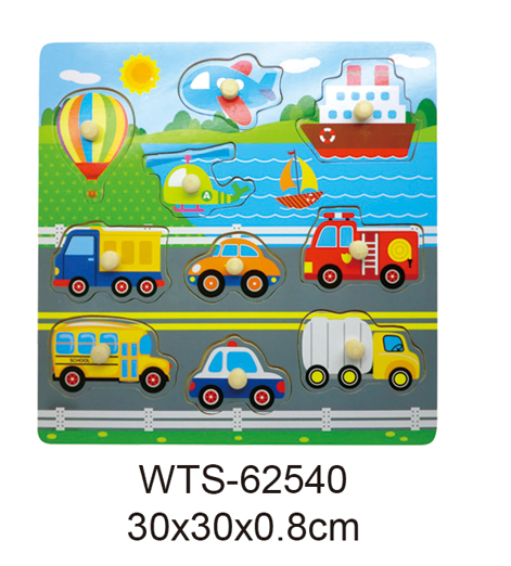 WTS-62540 Wooden Knob Puzzle Early Education Transportation Vehicle Learning Eco-friendly early education and Cognitive Training wooden toys with size 30X30X0.8cm for kids
