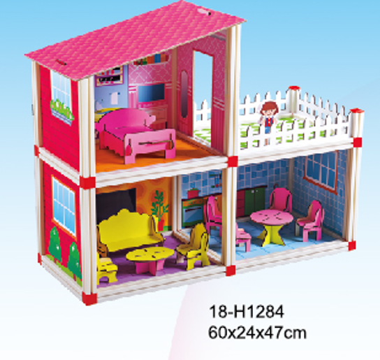 Red 18-H1284 Wooden Dollhouse, pretend play toys, Cognitive development, Baby training wooden toys with size of 60X24X47CM for kids