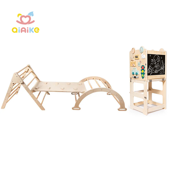 Montessori Toddler Folding Helper Baby Multifunction Wooden Kids Learning Tower & Pikler Triangle Climbing Frame Toy Set with Ramp and Arch