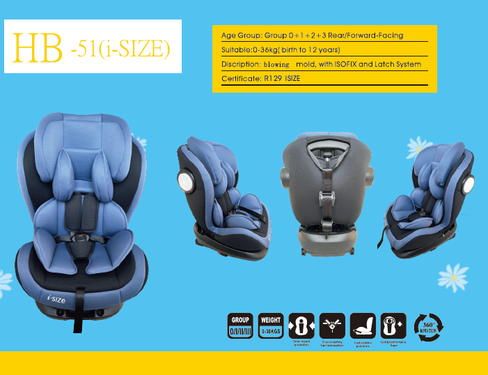 HB-51 0+1+2+3 rear/forward-facing baby car seat 0-36kgs for children ages 0-12 years wholesale from China factory