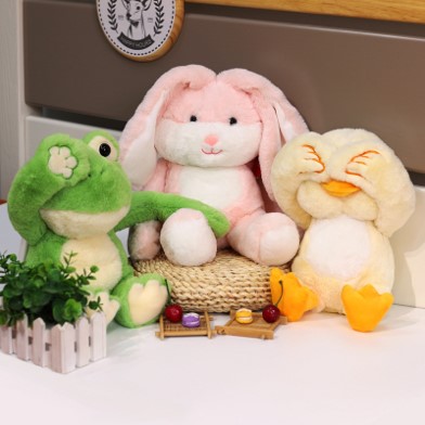 Newly released super cuddly stuffed toy frog, rabbit, dinosaur, panda, duck wholesale from China toy factory